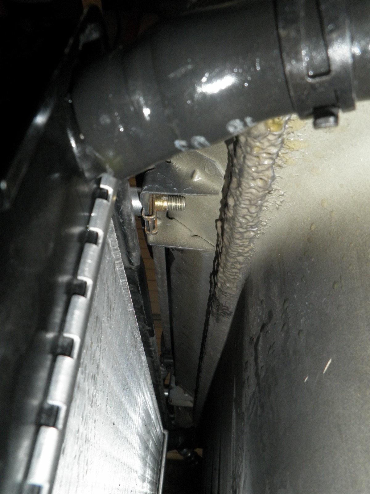 Deja au niveau de la vis qui maintient les deux demi cadres du radiateur.