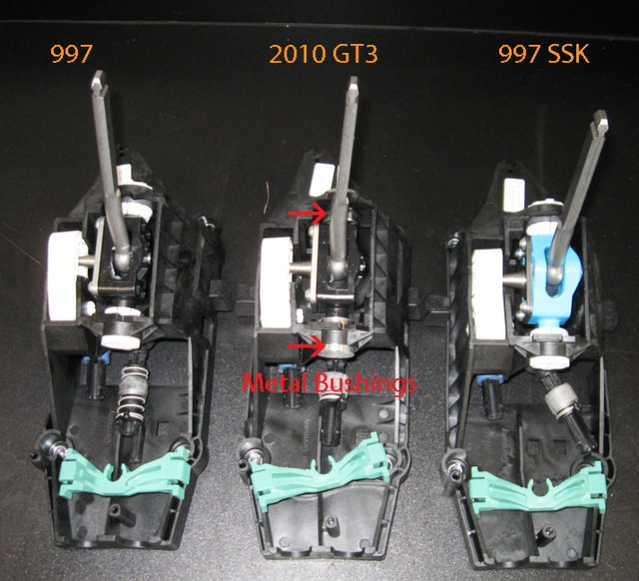 Comparaison des 3 leviers de 997, qui peuvent etre montés sur 996 facilement, ils sont livrés avec un alignement préreglé d'apres ce que j'ai compris ce qui n'est pas le cas d'un kit aftermarket: