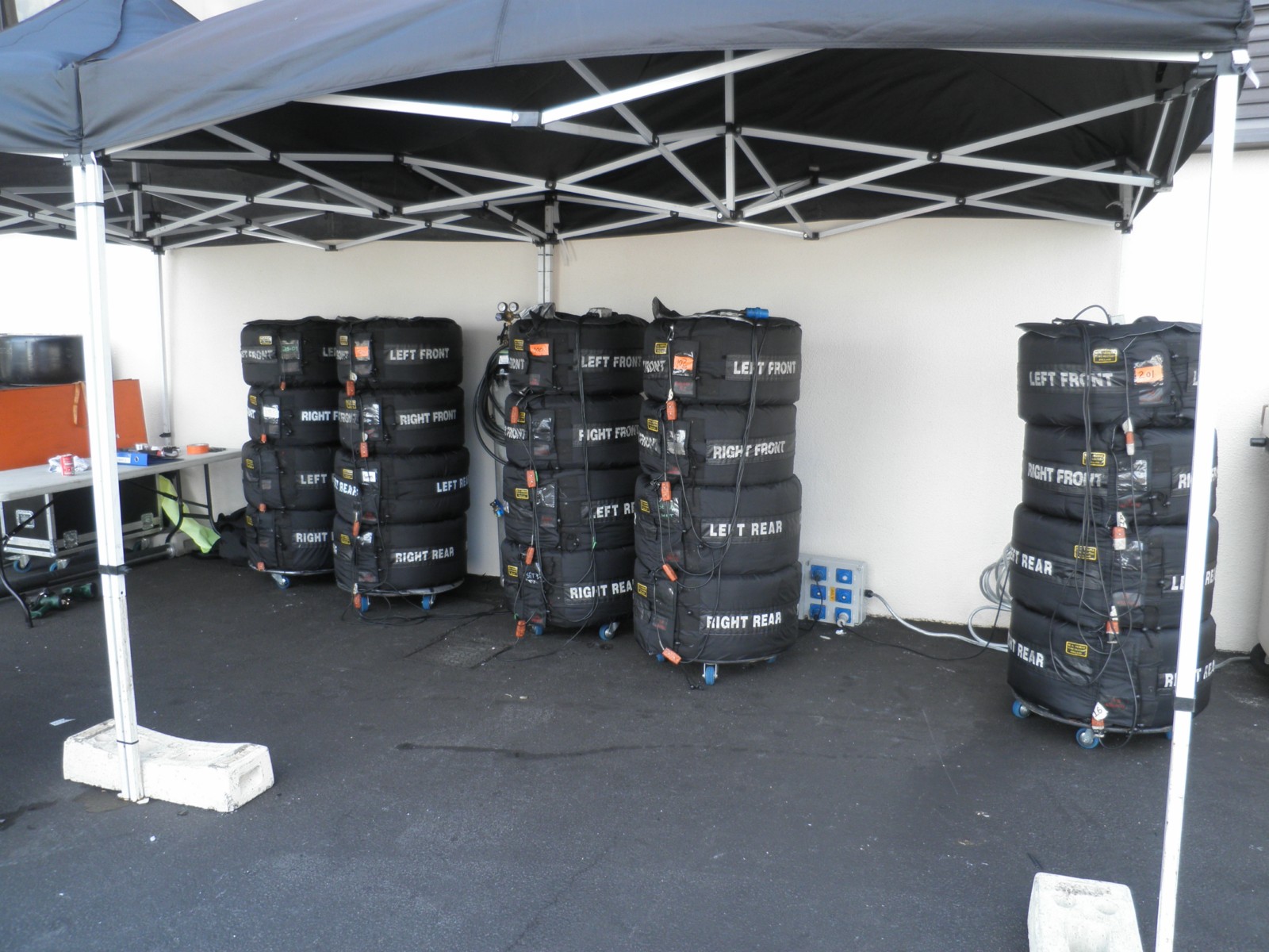 Et on fait un petit tour: Les paddocks, avec les semis alignés, les pneus, les tentes et couvertures chauffantes, bref , du boulot pour Bibendum!!!